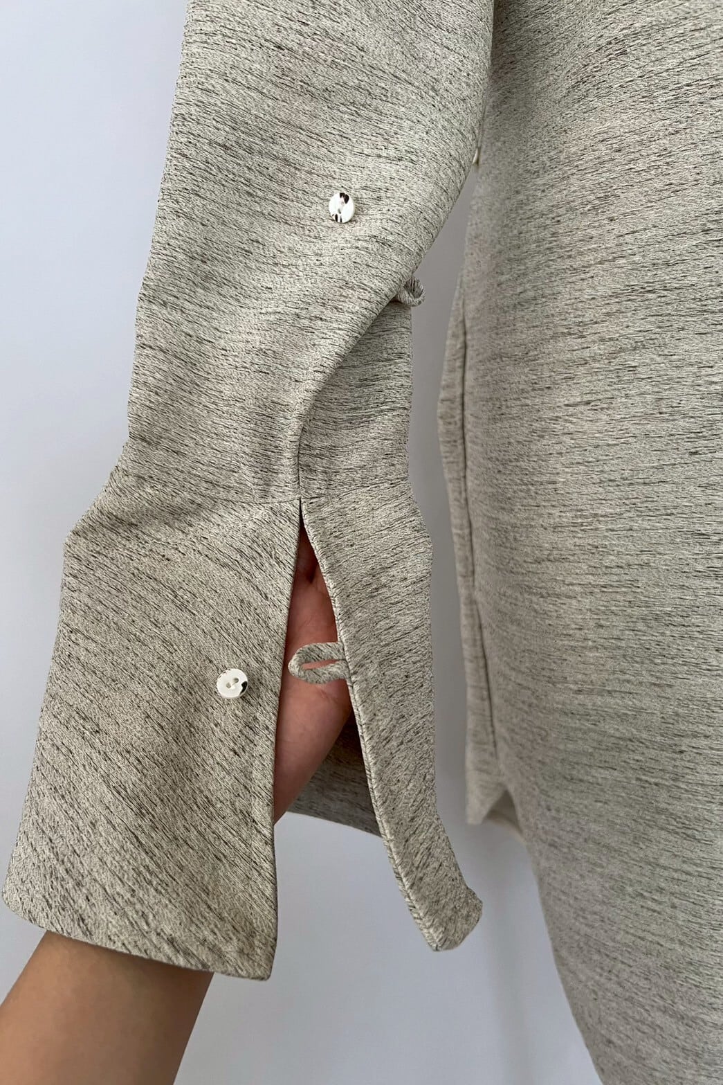 厚みのあるカフスと麻のような風合いの美しい主役級シャツドレス。