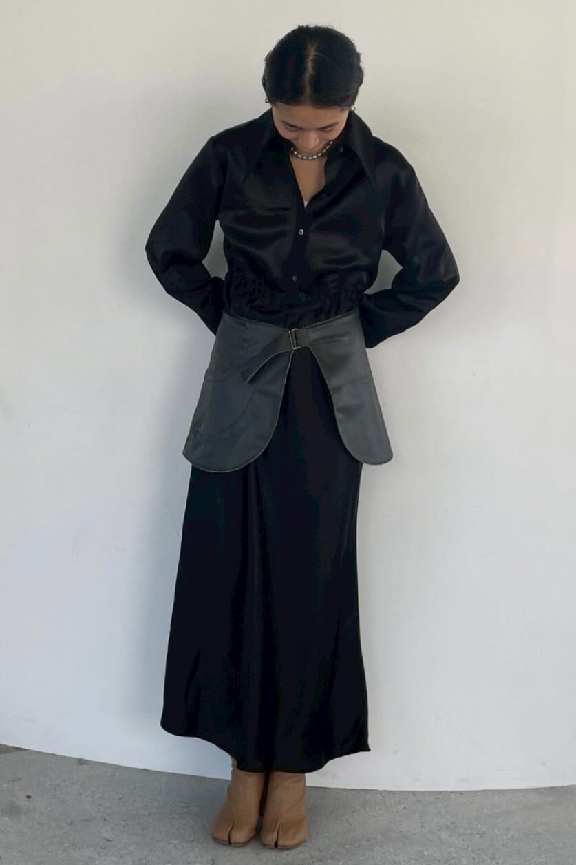 バイアスカットのスカートは、体に沿ったマーメイドのきれいなシルエットに。