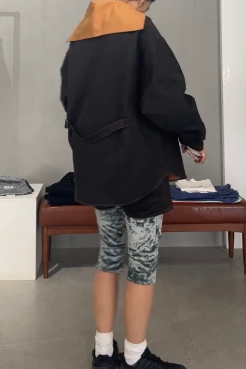 ・きれいめなシャツとベロアレギンスを合わせてスポーティーミックスに、ジャケットを着て大人のすっきりとしたコーデも〇