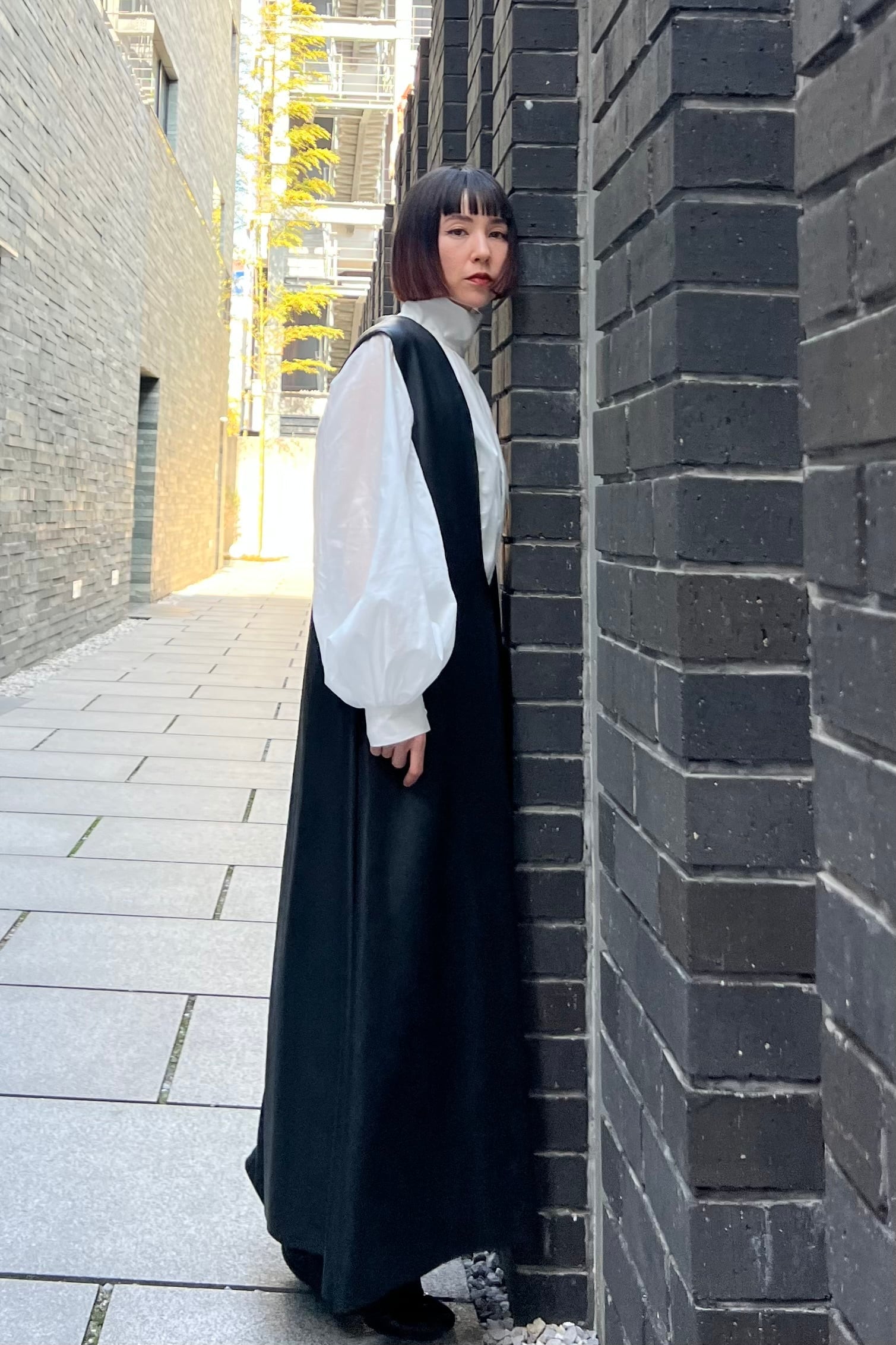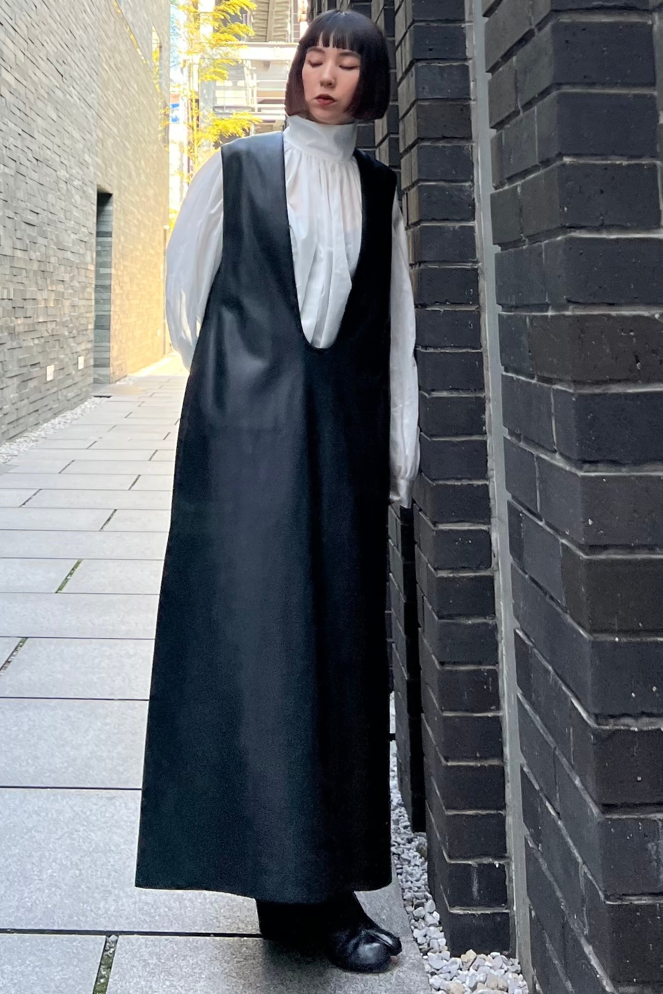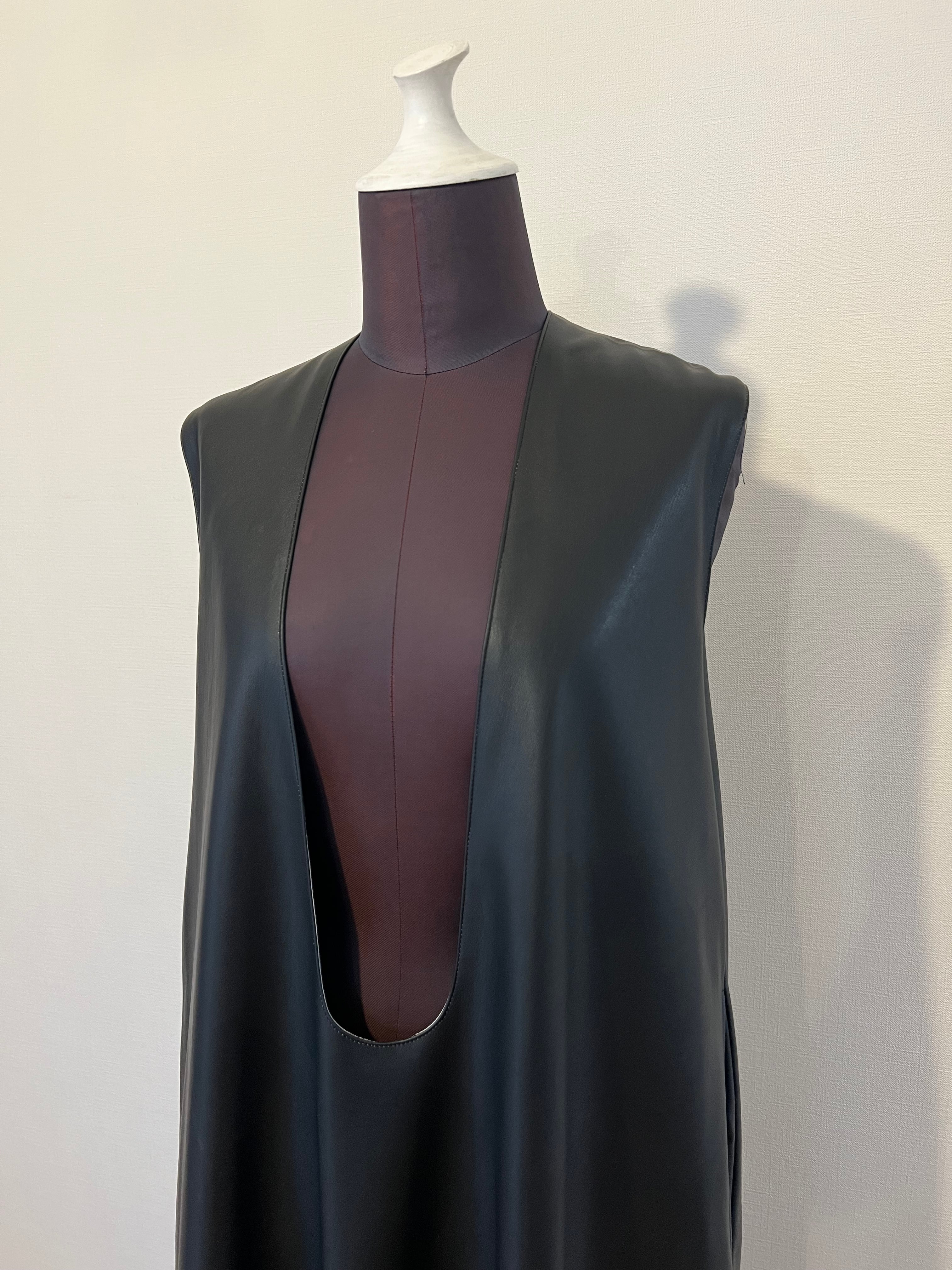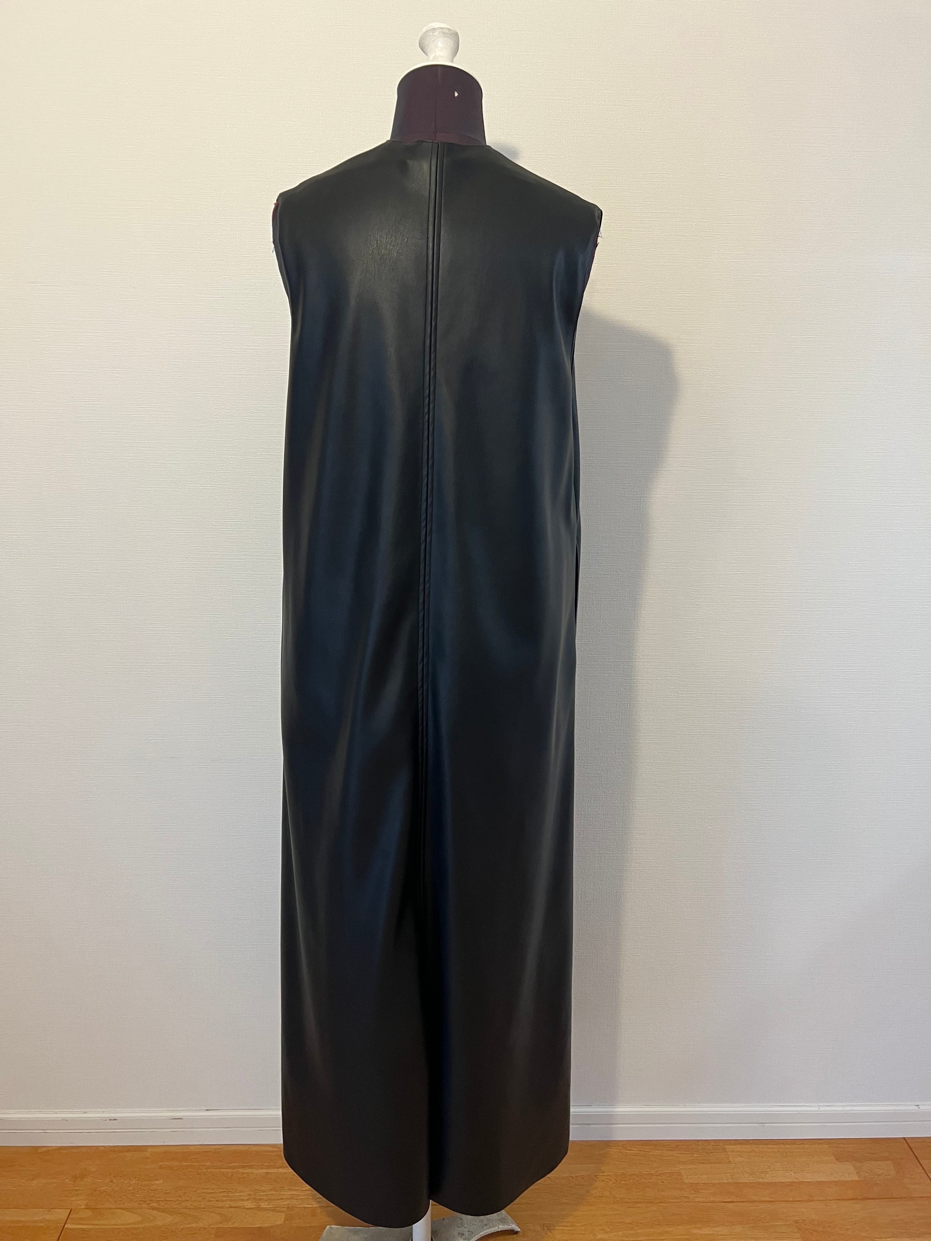 ★着丈調整可★オンライン限定★ディープUドレス(フェイクレザー&切りっぱなし)Deep U dress