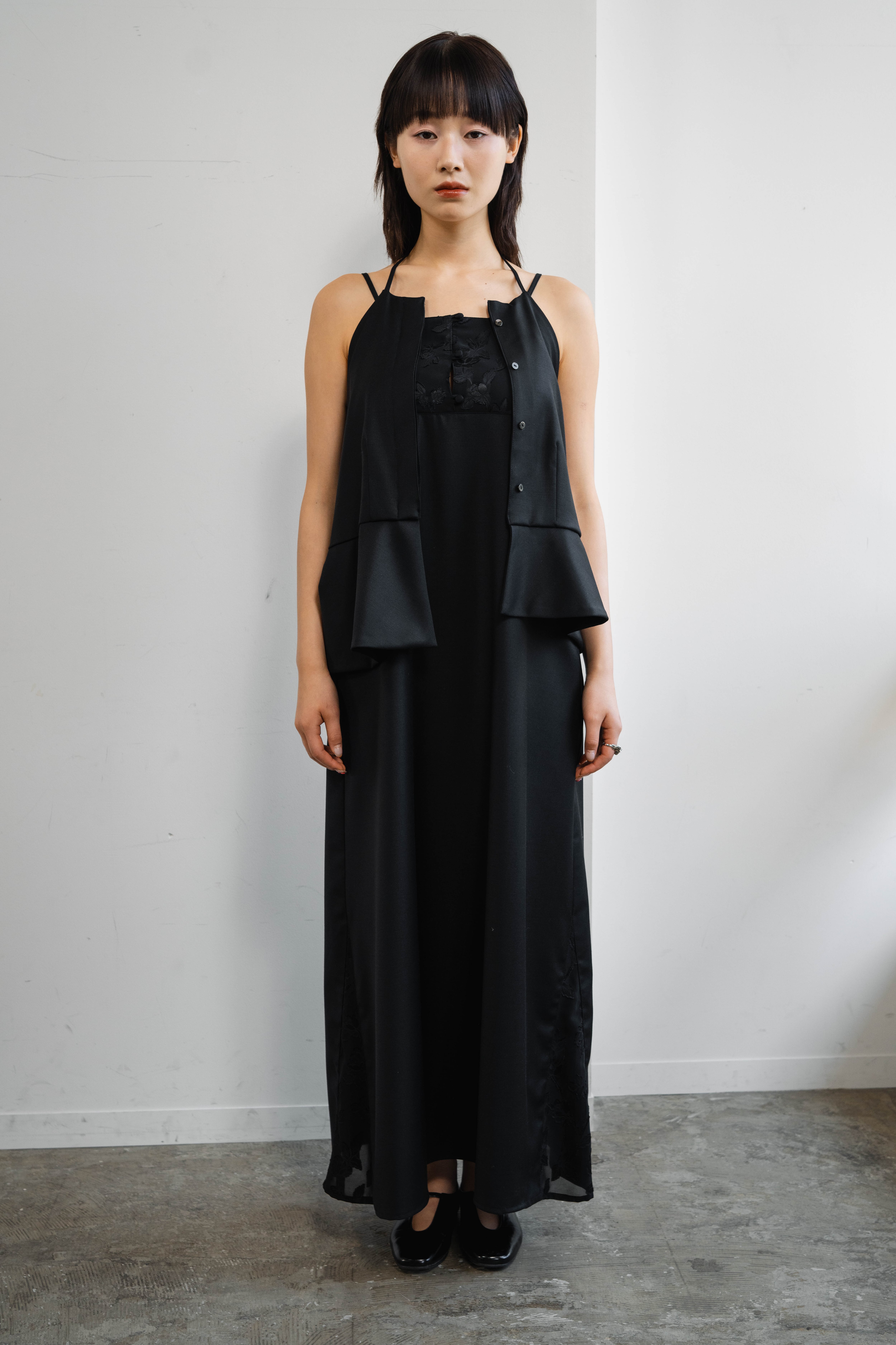 前コレクションでシアー素材にて展開していたデザインを、素材を変え、シーズンレスで楽しめる一着に。